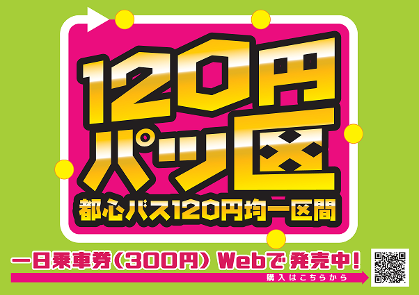 120円パッ区は、市中心部の一定区域内のバス運賃を120円均一にすることで、利用しやすく便利な公共交通を目指していこうという取り組みです。