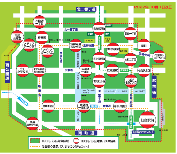 仙台の移動をもっと自由にスマートにするための「仙台MaaS(マース)」のサービスとして、「120円パッ区」内が1日乗り放題となるお得な乗車券を販売します。詳しくはこちらをご確認ください。