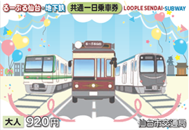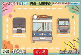 るーぷる仙台と地下鉄(南北線・東西線)が一日乗り放題となる乗車券です。