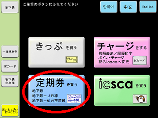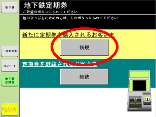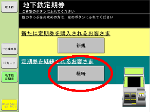 地下鉄駅券売機で定期券を購入する