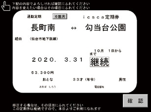 券売機でicsca定期券を継続購入する