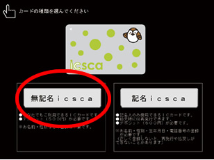 •無記名式icscaを購入する際は、直接窓口係員にお申し付けください。