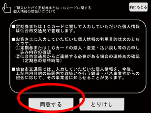 ・仙台市交通局では、入力していただいた個人情報を、上記目的の範囲内で取扱いを行う鉄道・バス事業者からの照会に応じて、その事業者に知らせることがあります。