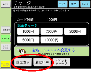 icscaのご利用日、ご利用内容(種別、場所)などのご利用履歴や入金(チャージ)残額を地下鉄駅券売機や定期券発売所などで表示・印字することができます。