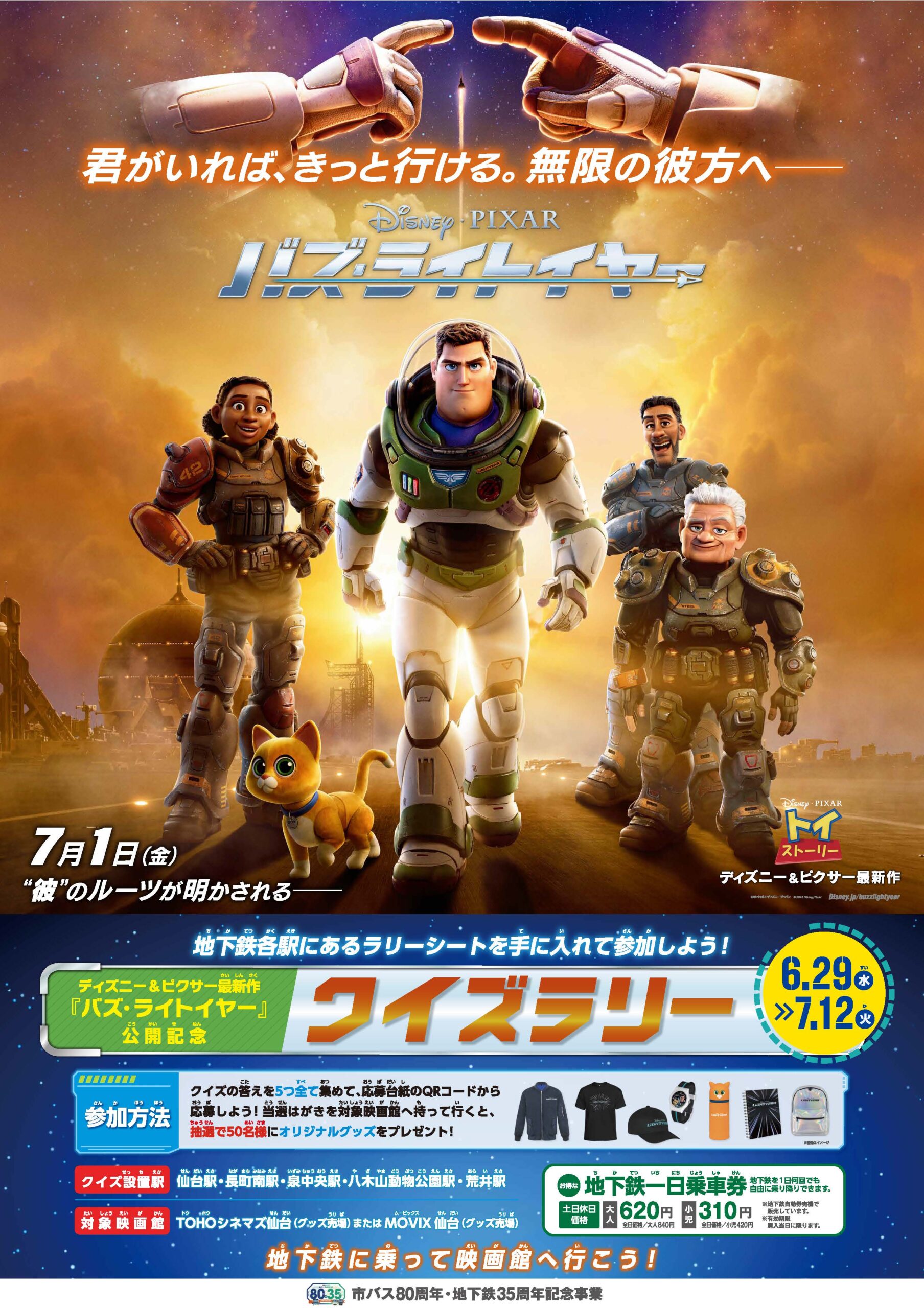 7/1から公開される「バズ・ライトイヤー」のクイズラリーをするよ!ラリーポイントを回るには一日乗車券が便利だよ!